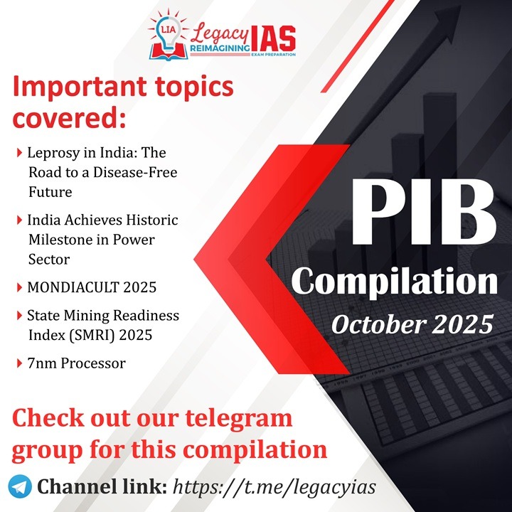 Legacy IAS October 2025 PIB SUMMARIES – Monthly Compilation for UPSC Civil Services Exam (IAS Exam) will be extremely crucial for your UPSC preparation. The source, Press Information Bureau of India is indubitably the most important source of Current Affairs for any UPSC aspirant. In this Compilation you will find important PIB articles from the […]