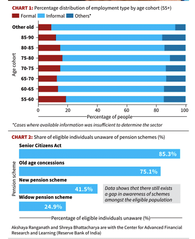 - Over 88% of senior citizens work in the informal sector with no assured pension or social security.