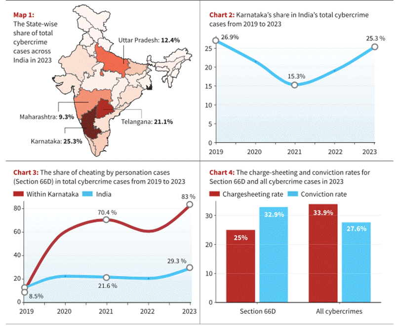 - Karnataka accounted for over 70% of Section 66D cases in 2023, drawing attention to regional patterns and enforcement challenges.
