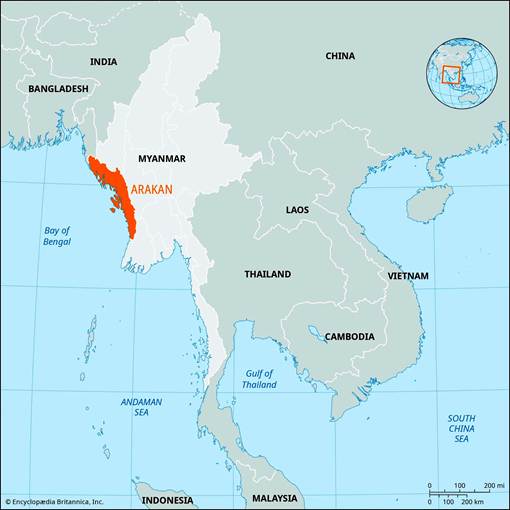 - Location: Western Myanmar, along the Bay of Bengal, bordering Bangladesh.