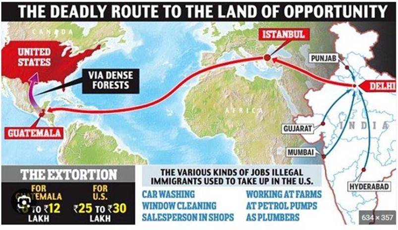 - They had paid hefty sums (₹25–60 lakh each) to human traffickers promising entry into the U.S. through Latin America.