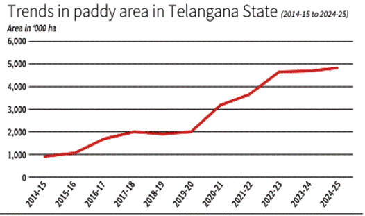 - Paddy grown in traditionally non-paddy regions (Punjab, Telangana).