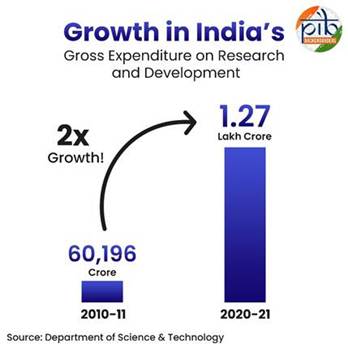 1. India’s expenditure on R and D rose from 60,196 crore in 2010-11 to 1.27 crore in 2020-21.