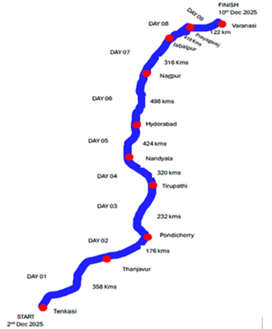 - Route: Tenkasi → Kashi (2–10 December 2025).
