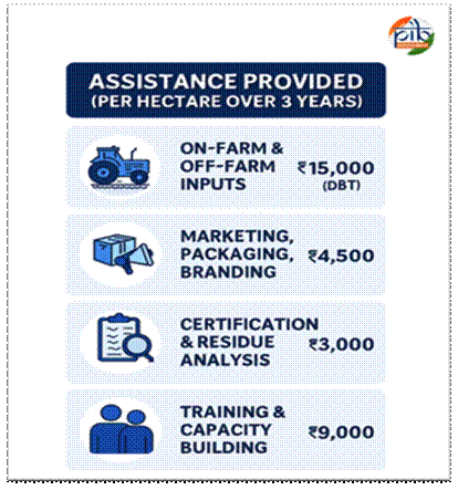 - ₹15,000 for on-farm & off-farm organic inputs (DBT)