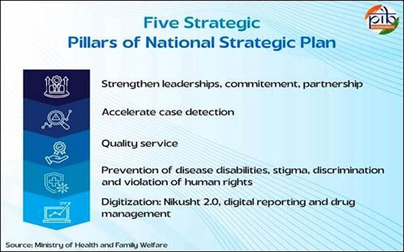 • India’s National Strategic Plan (NSP) and Roadmap for Leprosy 2023–27 aims for zero indigenous cases by 2030.