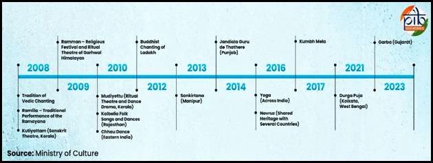 - 15 Indian elements inscribed on the UNESCO ICH Representative List.