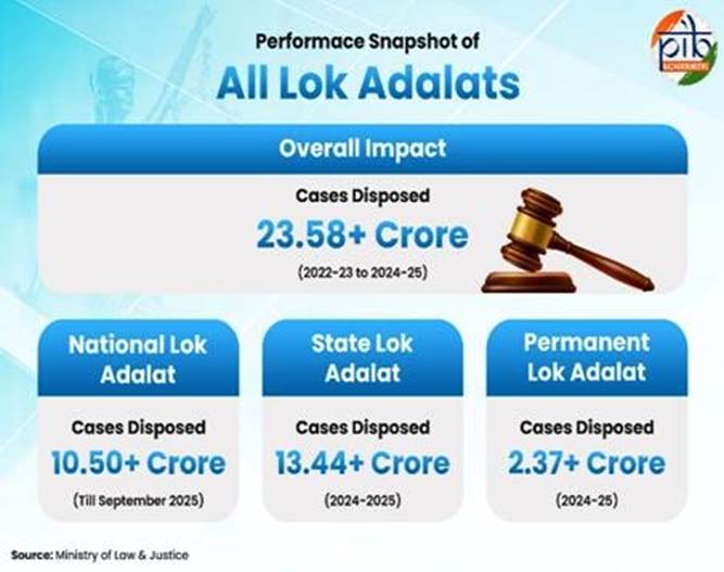 - PIB release (13 December 2025, Delhi) highlighted Lok Adalats as a key pillar of people-centric justice delivery.