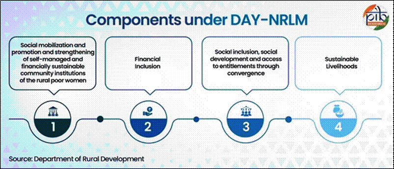 - Anchored in Aatmanirbhar Bharat and Digital India visions, DAY-NRLM symbolizes India’s transition from welfare dependency to self-reliant entrepreneurship—transforming the rural economy through collective strength and women’s leadership.
