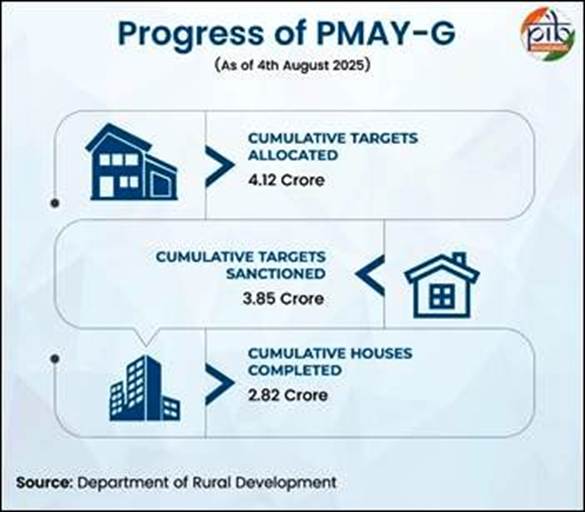 - Allocation (till Aug 2025): 4.12 crore houses.