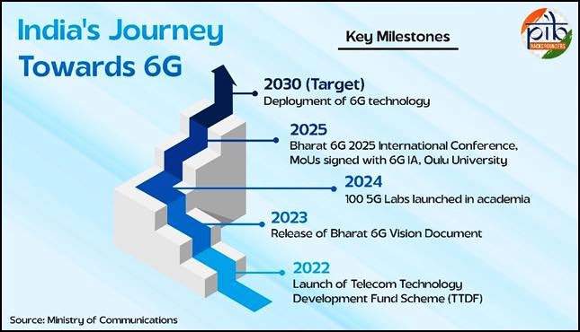 • Goal: India to become a frontline designer, developer, and deployer of 6G by 2030.