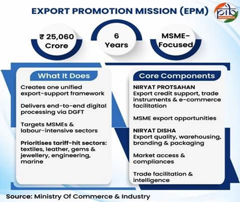 6) Export Promotion Mission (EPM) — ₹25,060 crore (2025-31)